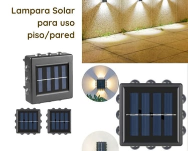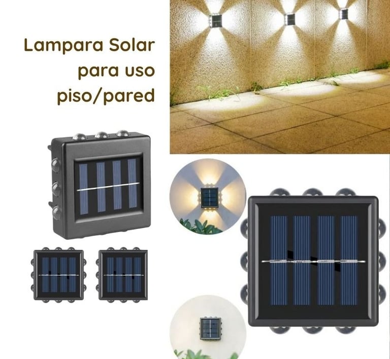 Lámpara solar LED de piso o pared con 12 luces en 4 lados – iluminación exterior resistente al agua, ideal para jardín, caminos o terrazas